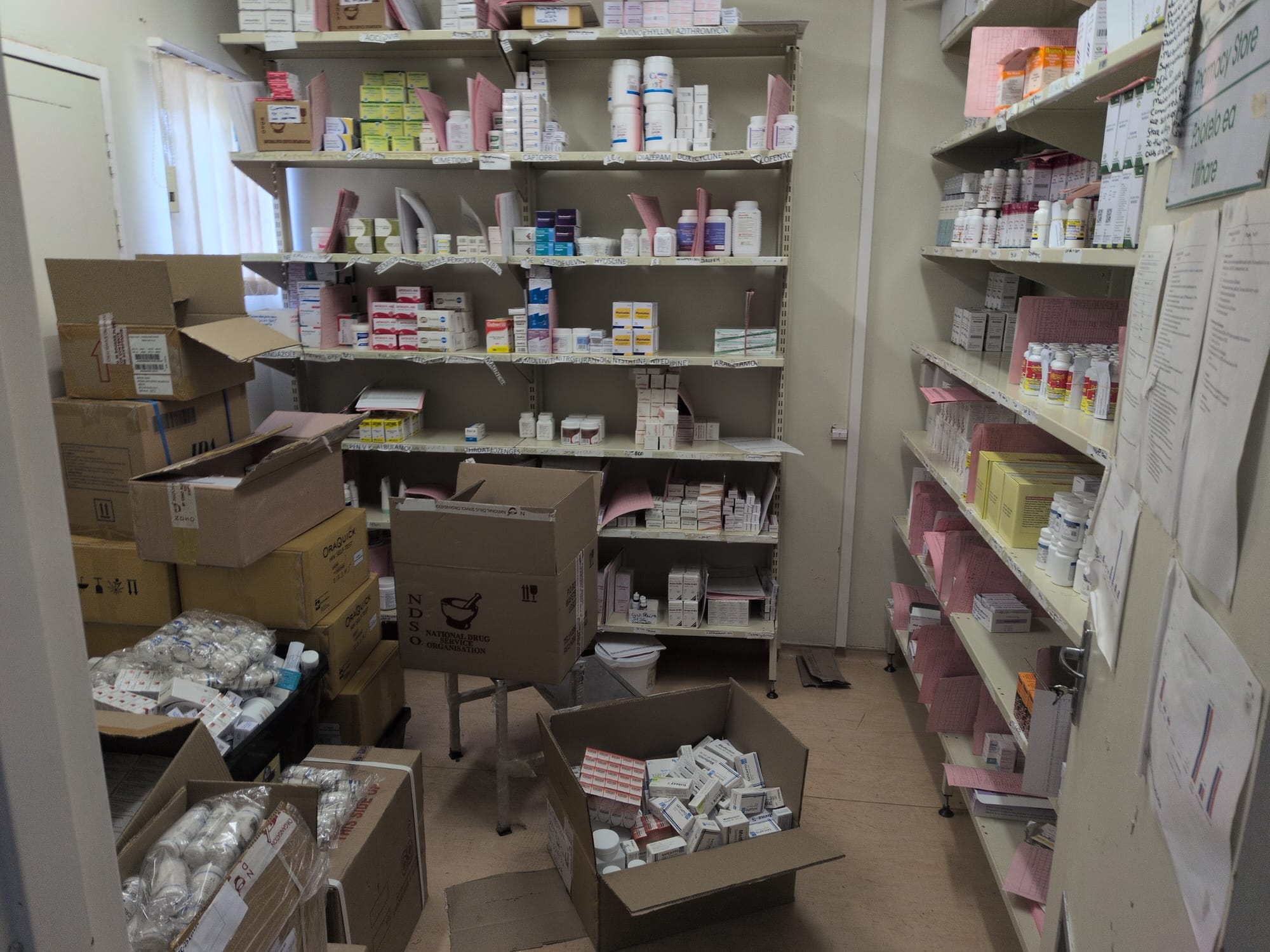 Then we spent the late morning putting medication stock cards back on the shelves. These cards are physical storage trackers, so I was tasked to ensure the amount listed on the card matched the amount we had; This is critical for when the clinic submits its monthly medicine request, so we can get what we need.